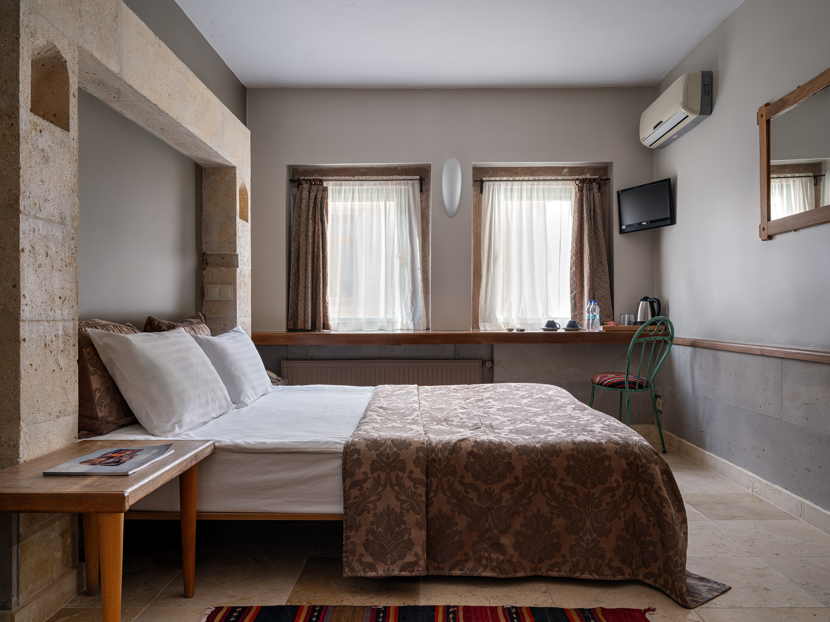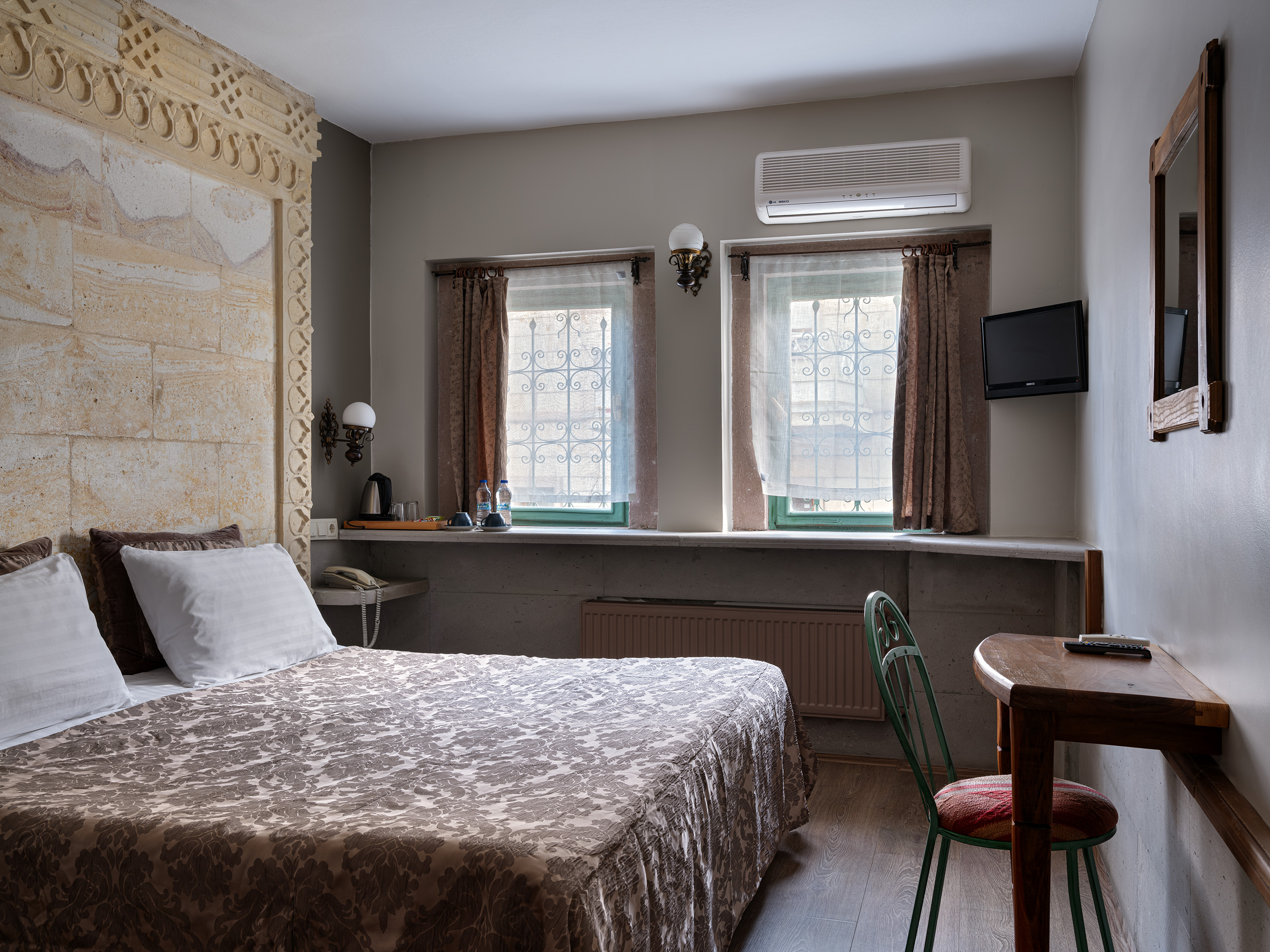 Located in the center of the historical Goreme district, Heybe Hotel is just a 5-minute walk from the bus terminal. Heybe Hotel, which has 33 rooms in total, consists of 3 floors. There are 3 suites, 16 double stone rooms, 14 twin stone rooms.